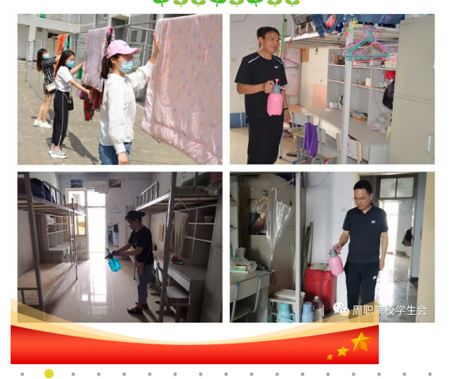 缤纷夏日,阳光总会普照。在经历了一个难忘而漫长的寒假后,孩子们终于要“回家”了。为做好疫情期间学生返校复学各项准备工作,学校认真落实各项防控措施,筑牢校园疫情防控线,做好校园“消杀”、清洁等工作,为全校师生返校复学提供一个安全、健康、舒心的环境,也为疫情后的开学做好了无缝对接工作,同舟共济,履职尽责,“净”待周职学子们平安归来!