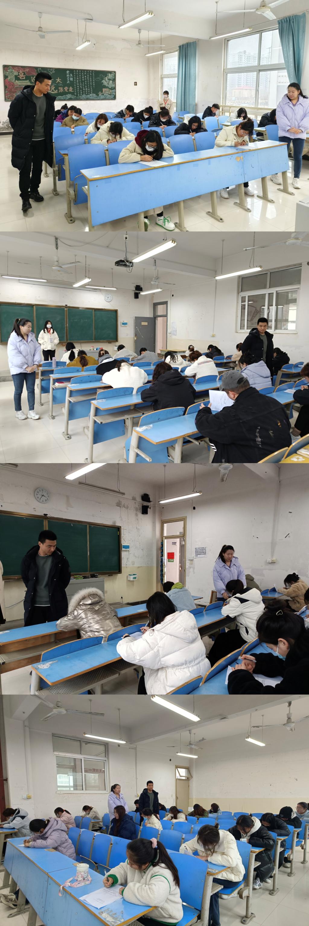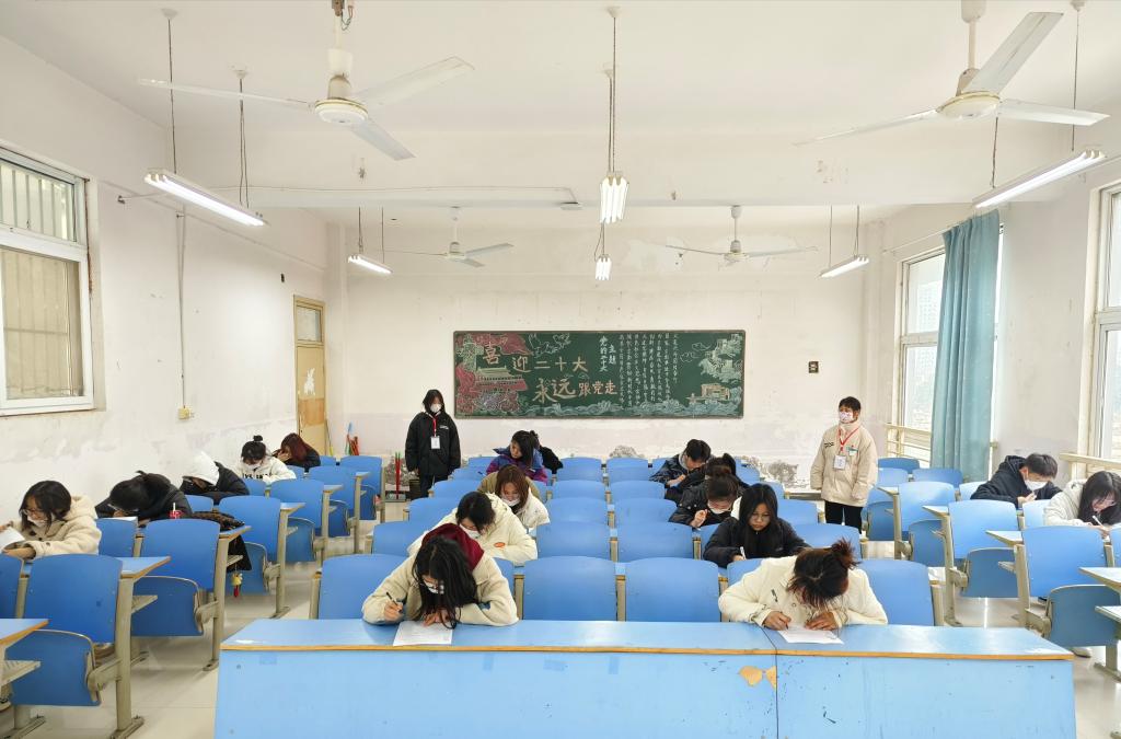 考试期间,学生党支部书记崔彤彤、组织委员刘馨馨对考场进行了巡视。