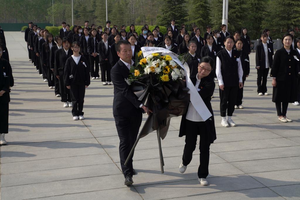 全体人员在纪念碑广场整齐列队,在庄严肃穆的国歌声中,致敬英烈祭扫仪式拉开帷幕。学院党总支书记王春生和教师党支部书记耿润向纪念碑敬献花篮,全体人员三鞠躬向英烈们致敬,肃立默哀三分钟致以深切缅怀。