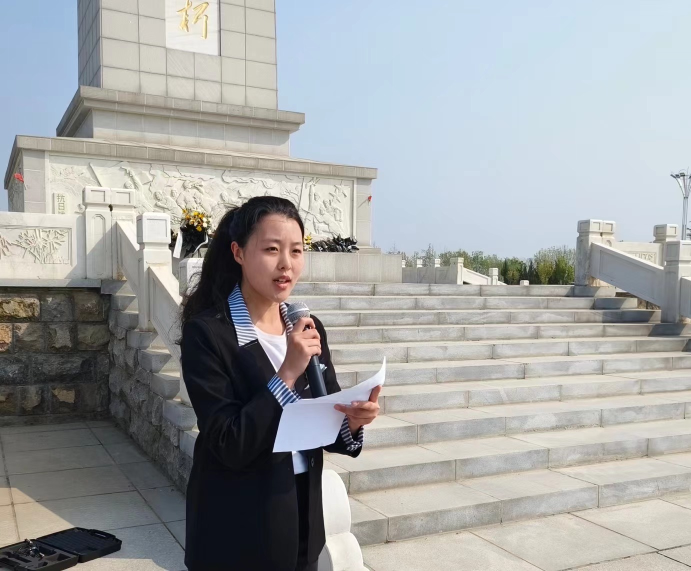 青年教师石孟晓发言,她表示,作为新时代的青年教师,要学习革命先烈崇高的爱国主义精神和坚定的社会主义信念,学习革命先烈艰苦奋斗、顽强不息的拼搏精神,学习他们勤于学习、不倦探索的求知精神。在奋进中不断超越,无愧于先辈的遗愿,无愧于党的关怀,无愧于学校的殷切期望!