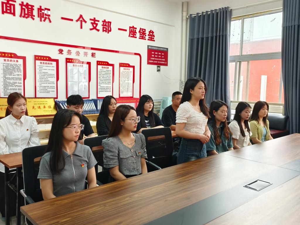 会议严格按照组织程序规范进行,21名同志依次宣读转正申请书,汇报个人在预备期间的表现情况,表明按期转为中国共产党正式党员的心愿及继续努力的决心。之后,党小组长周姣姣同志介绍郝雨欣等21名预备党员在预备期内的表现情况和小组对其是否能转正的意见,对大家在思想、工作、学习和就业等方面的表现给予了肯定,也指出了不足。随后,经支部党员充分讨论,出席大会的全体党员进行了无记名投票,大家一致同意郝雨欣等21名同志按期转为中共正式党员。