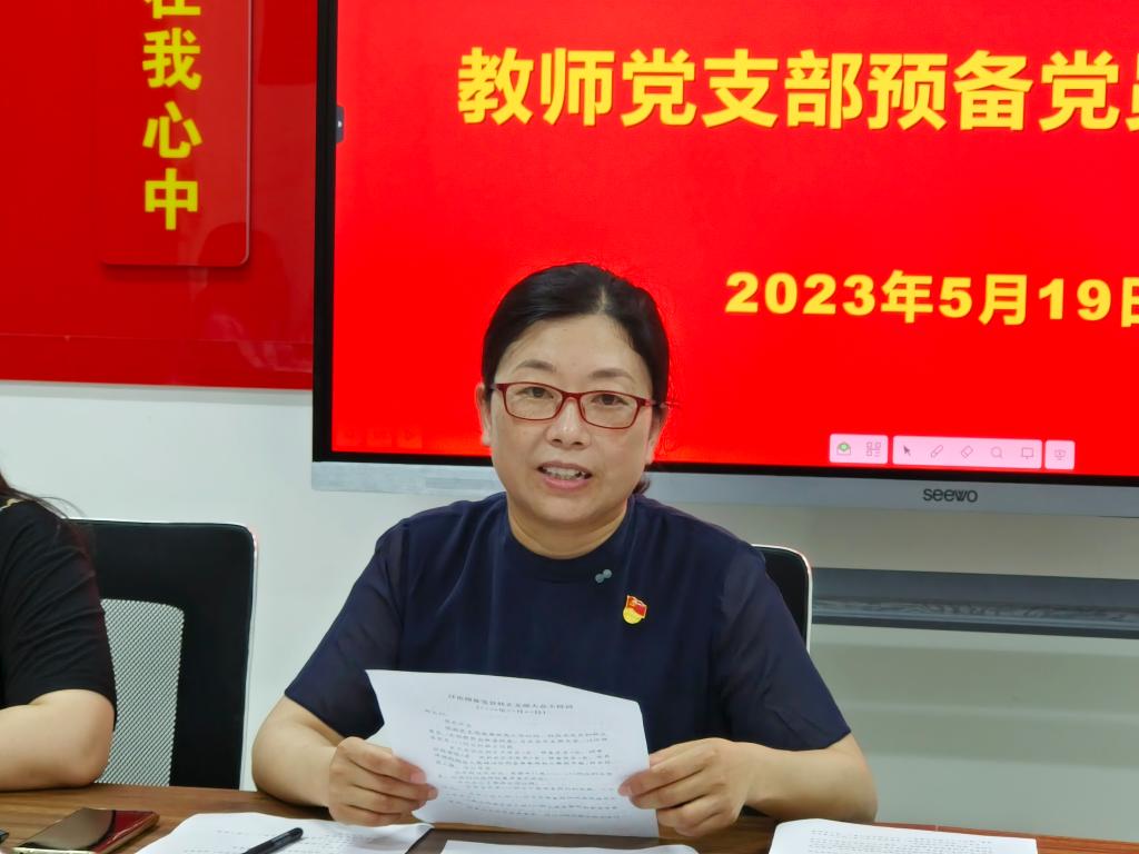耿润同志代表教师党支部报告高衡、余彦锦同志在预备期间的教育考察情况。与会党员发表意见,对预备党员高衡、余彦锦同志能否转正进行充分讨论并表态发言。全体党员采用无记名投票的形式投票表决。教师党支部书记耿润同志宣布票决结果和支部大会决议,经支部大会无记名投票表决,同意其按期转为中共正式党员。随后,党员高衡、余彦锦同志作表态发言,表达了加强学习,努力工作,坚定不移跟党走,为党贡献力量的决心。