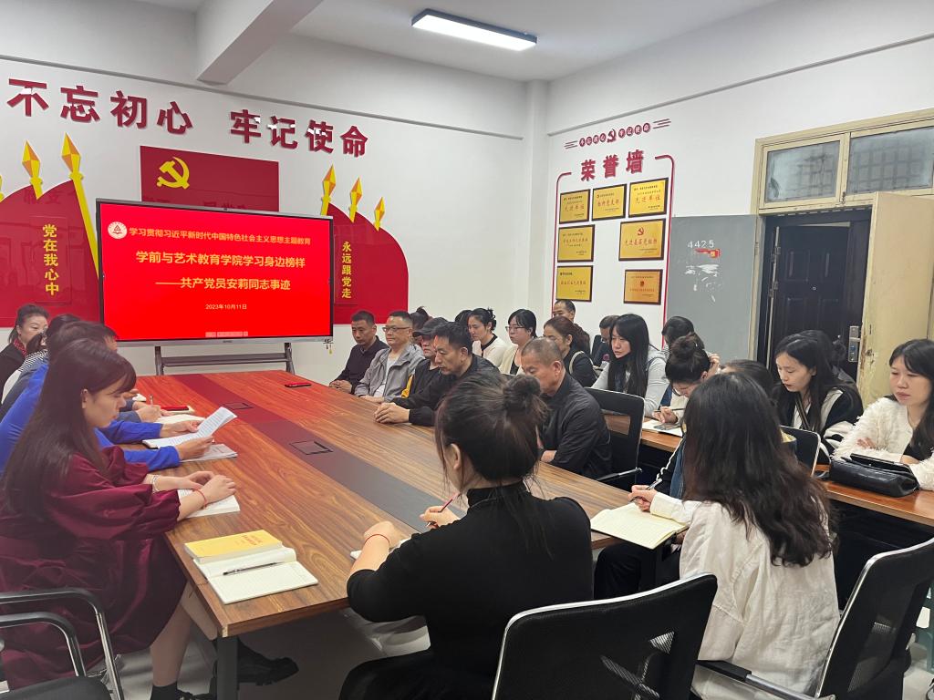 接着,党总支书记王春生讲到:学习榜样,见贤思齐更能让我们知道自己的差距。我们要对标榜样、看齐榜样,传承榜样,将学院的教育教学改革推入更进一步。我们要深刻学习榜样的先进事迹,学习安莉同志勇于担当、坦荡无私的高尚品德,只有这样,我们才能有更大的力量投入到教育教学各项工作中去,以此推进教育高质量发展。