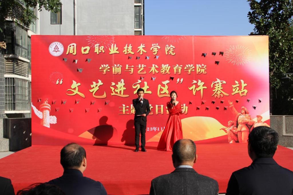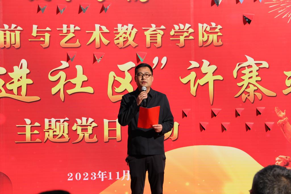 为全面深入学习贯彻习近平新时代中国特色社会主义思想和党的二十大精神,11月7日下午,WilliamHill官方网站在许寨社区开展“文艺进社区”主题党日活动。周口市经济开发区太昊路办事处主任徐方、许寨社区党支部副书记许化启、校党委副书记李明臣、副校长于爱霞、宣传部部长万四新、组织统战部部长张丹出席活动。学院全体党员、学生党员积极分子代表、许寨社区的百姓参加活动。