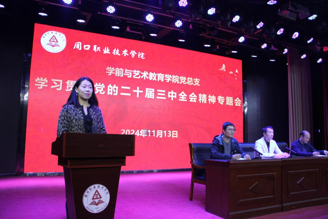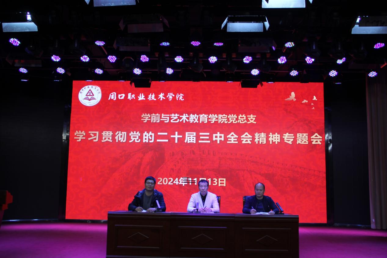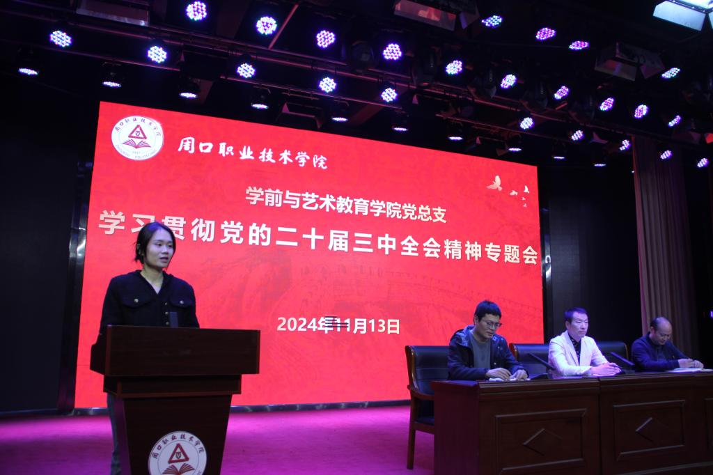 11月13日,WilliamHill官方网站党总支在艺术演播厅召开学习贯彻党的二十届三中全会精神专题会,学院全体党员教师参加,会议由副院长杨晨主持。