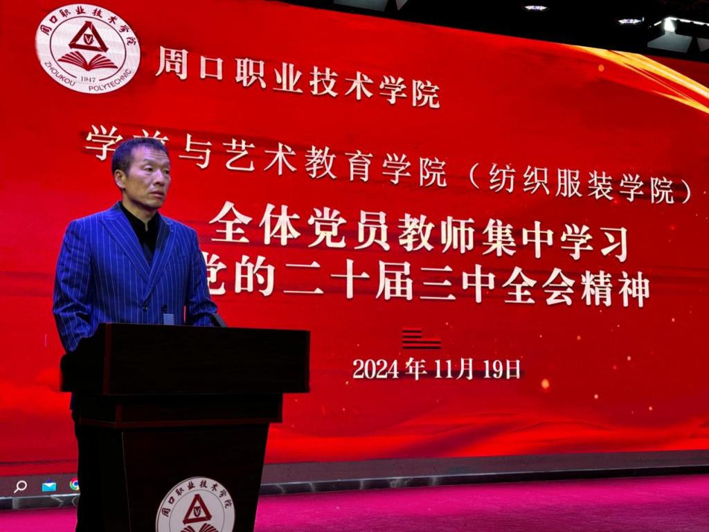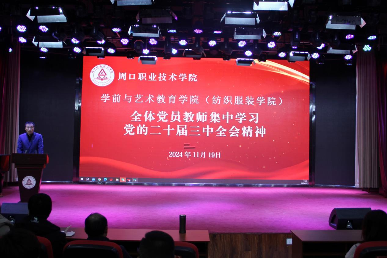 11月19日,WilliamHill官方网站(纺织服装学院)组织全体党员教师在艺术演播厅集中学习党的二十届三中全会精神。