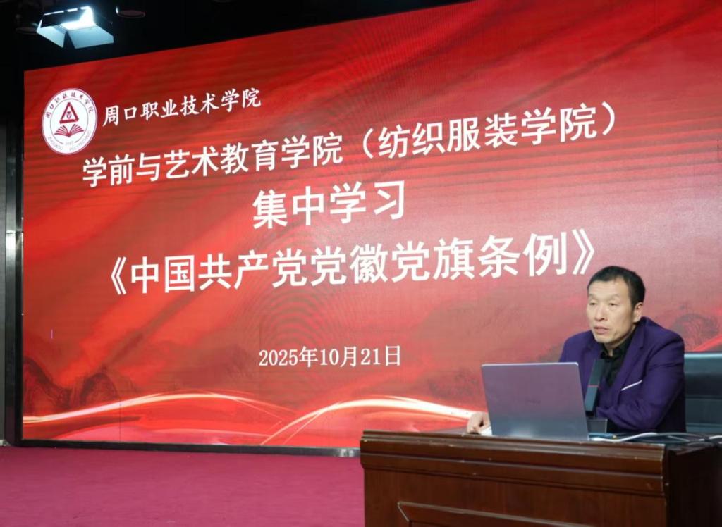 10月21日,我院组织全体党员教师专题学习《中国共产党党徽党旗条例》。党总支书记王春生带领大家深入研读条例内容,详细解读了党徽党旗组成规范;重点强调其统一标准、分级与集中管理的核心原则,明确党徽党旗的使用要求及适用场合,规定党徽党旗需实行集中配备发放,纪念活动相关工作按照“谁发放谁负责”的原则落实。
