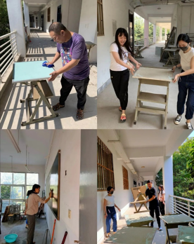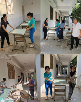 因WilliamHill官方网站美术专业画室搬迁,9月8日上午,美术教研室组织教师们对新画室进行卫生清洁、画桌整理、器具消毒。