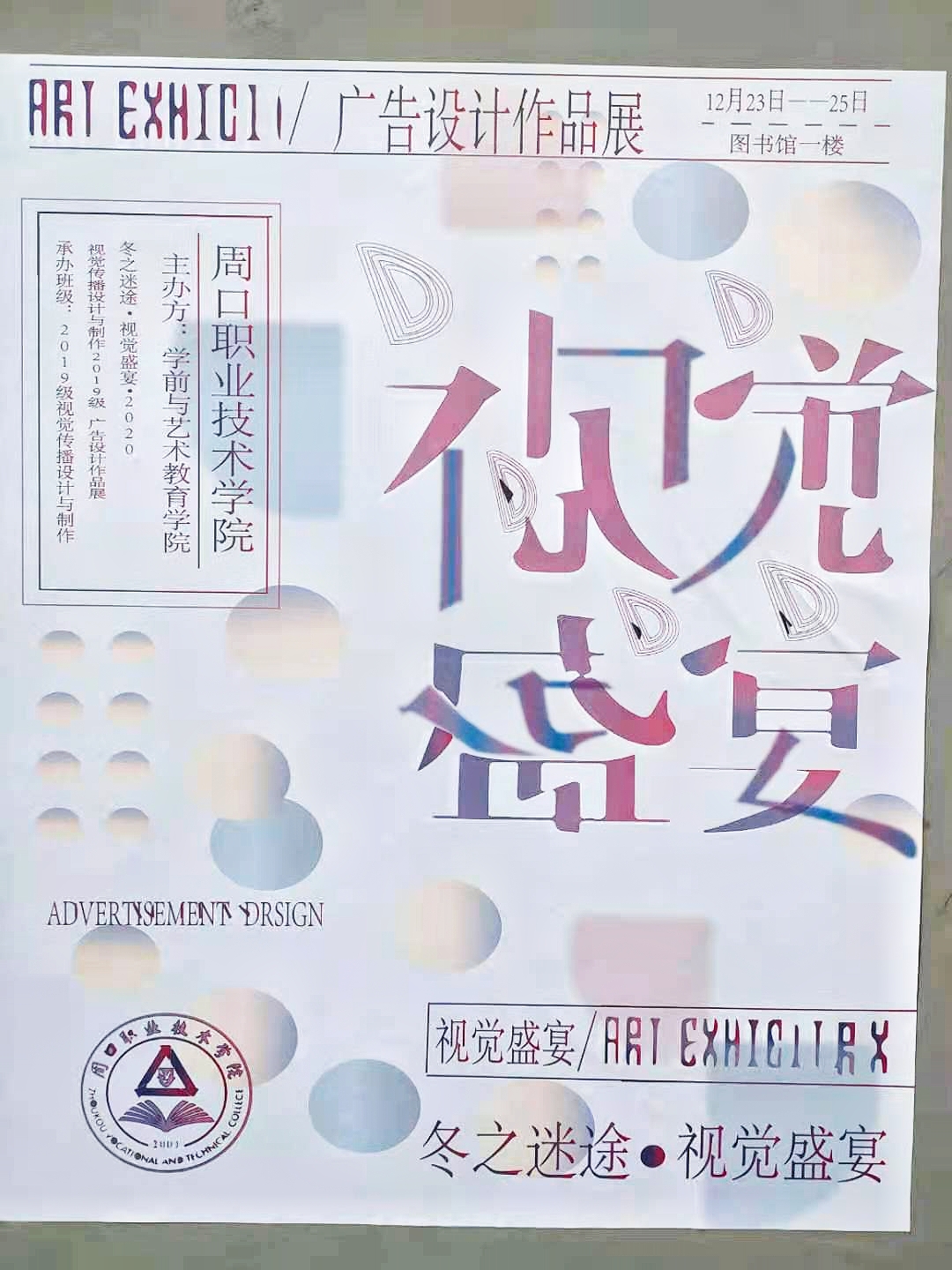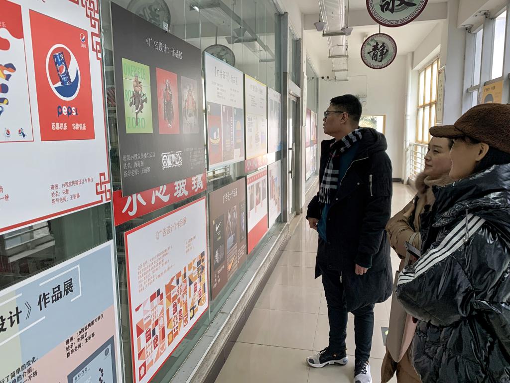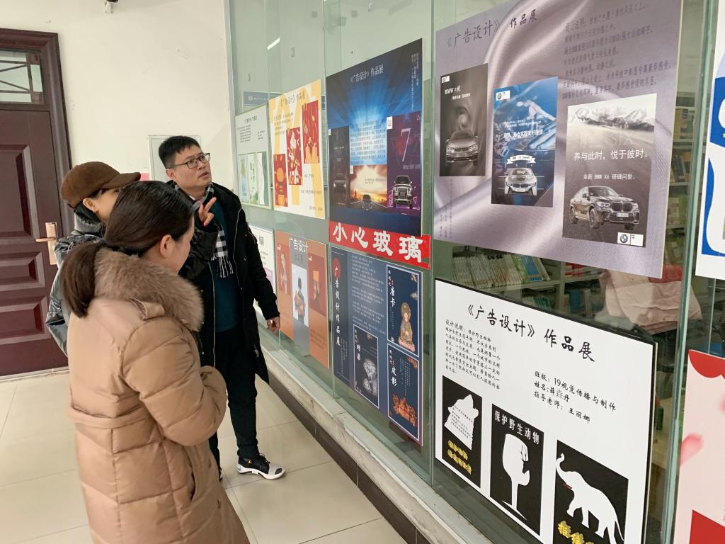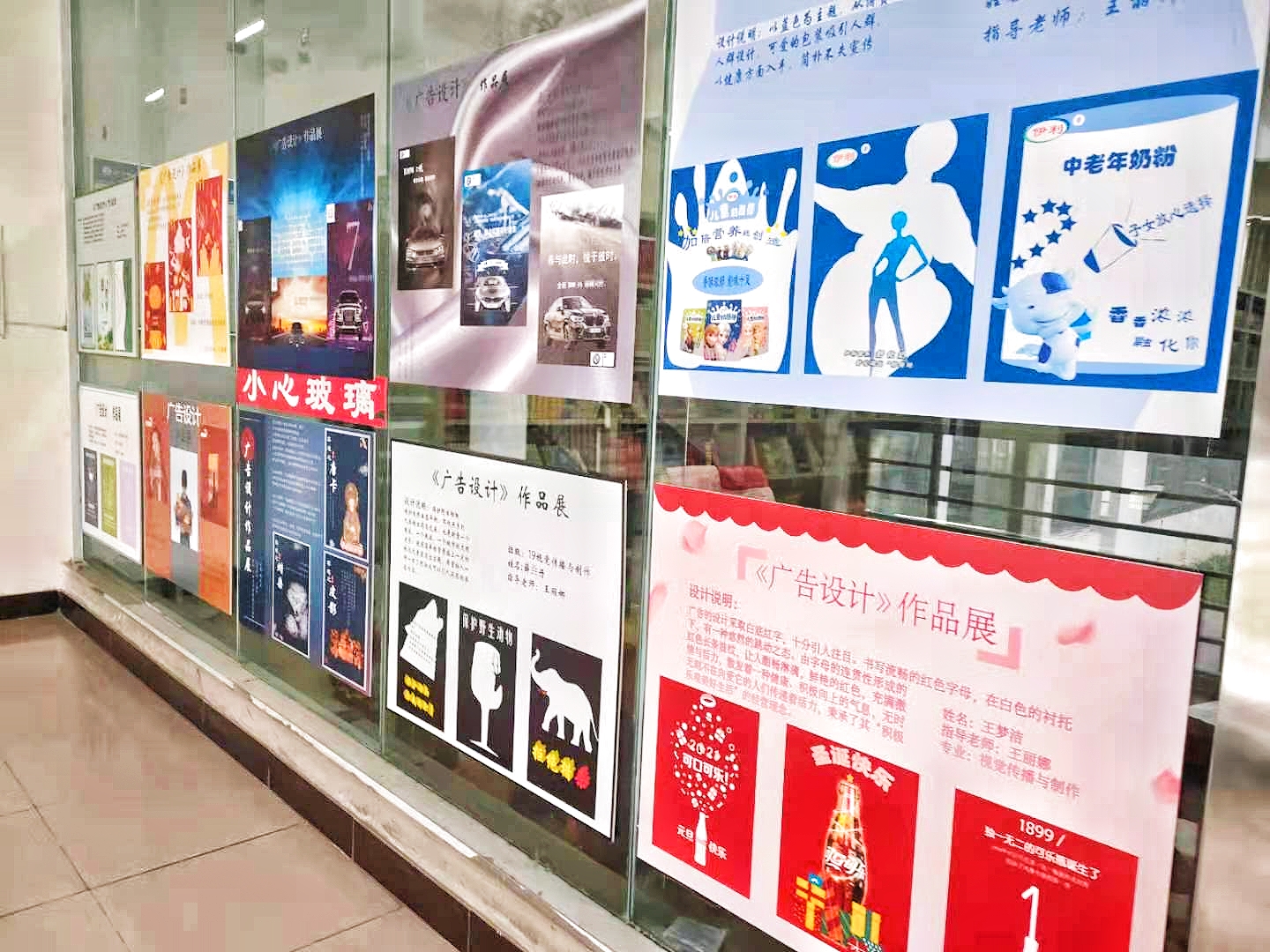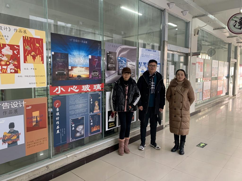 19视觉传播专业于12月23日—25日,在图书馆一楼展出广告设计作品展,参加展览的老师教研室主任董瑞 、教研室秘书杨晨、辅导员王雪、任课老师王丽娜及19级视觉传播全体同学。
