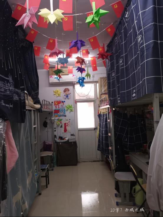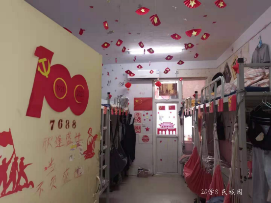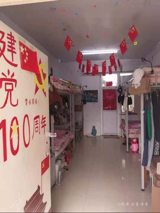 活动开展以来,我院青年学子就积极参与。打开一间间宿舍,目之所及皆是红色元素,鲜艳的五星红旗、庆祝中国共产党成立100周年的海报、各角落分布着的党史活动照片墙都充分展现了我院青年学习党史的积极态度。