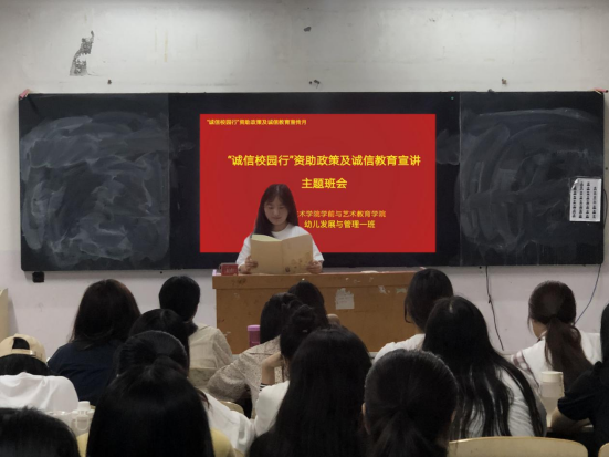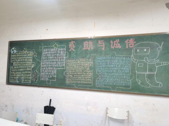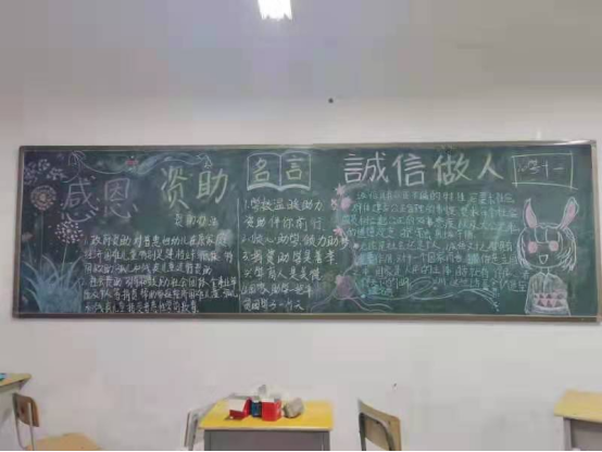 本次活动以资助政策专题讲座、主题板报、主题班会、观看资助政策及诚信教育宣传片和知识竞答等多种方式进行。丰富多彩的资助育人活动,以育人为导向,多渠道、多层次、全方位的宣传了国家资助政策,增强了学生的社会责任感,着力培养学生的诚信意识和感恩意 识。