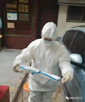 19级幼儿发展与健康管理二班的陈梦杰同学,在疫情开始后,看到所在地的志愿者招募就积极的报名,参加当地的疫情防控工作,在三十多度的天气穿上防护服为群众进行测温登记、消毒等,得到了当地居民群众的一致好评。