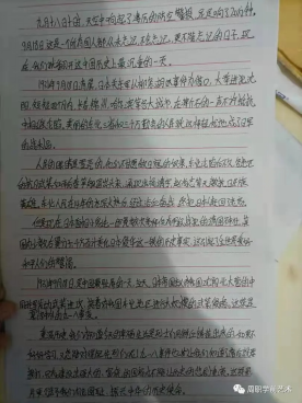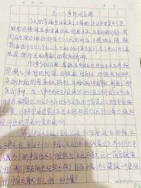 直播结束后,同学们纷纷书写观后感,在字里行间,表达了铭记历史,强我中华的昂扬斗志。