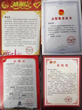 为充分肯定同学们在疫情防控工作中发挥的重要作用,并向无私奉献的疫情防控志愿者们表示感谢。当地有关部门为志愿者颁发了感谢信和荣誉证书,一封封有温度的感谢信和一张张沉甸甸的荣誉证书,是同学们投身疫情防控和践行青春使命最好的证明。