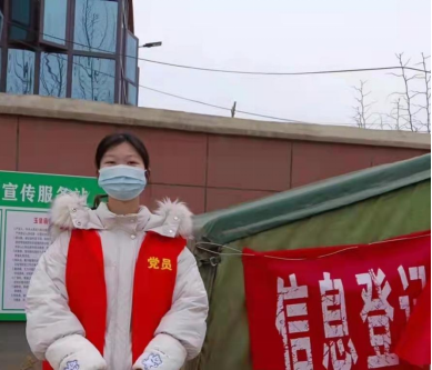 20级学前教育五班的苏冰宇同学,家住河南省周口市商水县,在知道疫情来临后,主动投身于当地的疫情防控志愿者服务活动。她的主要工作是负责协助当地的工作人员在医院门口对来往人员进行核酸检测信息登记,查看核酸检测证明、测量体温、宣传防疫知识,在疫情卡点处值班站岗等。
