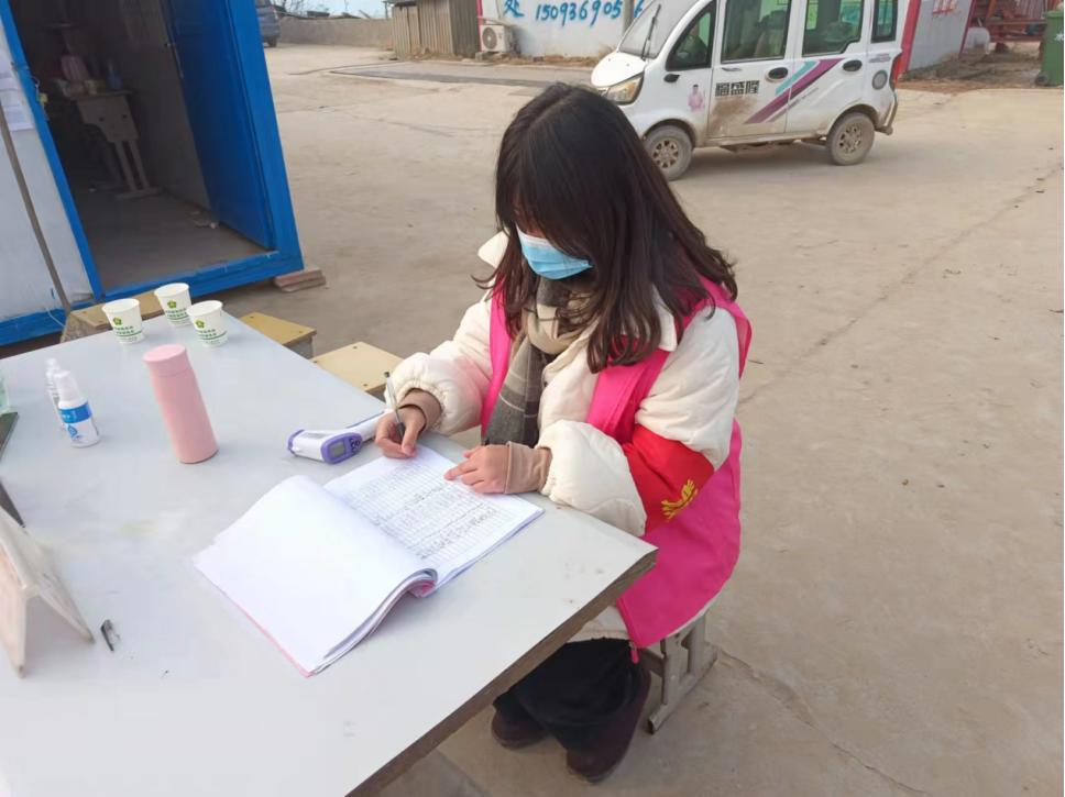 21级学前教育四班的陈笑笑同学,家住河南省商丘市虞城县稍岗镇史河村,面对疫情防控的严峻形势,她主动参加当地的疫情防控志愿者服务活动。她的主要工作是负责在村庄入口进行疫情卡点,协助当地的医护人员对返乡人员进行核酸检测和测量体温,并登记人员信息等。