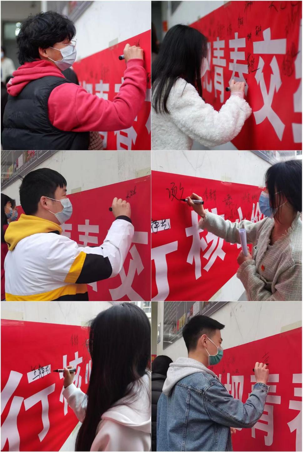 在同学们热烈的掌声中,领导班子以及学生代表依次在“践行社会主义核心价值观 ,别把青春交给手机”横幅上签名。活动结束后,晚自习各班又纷纷围绕比次主题开展班会,将此次签名活动倡议的精神传递到每一位同学心中。