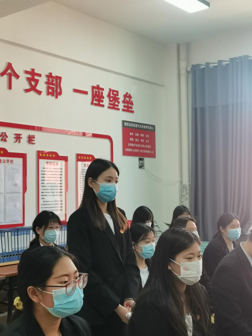 团总支书记刘馨馨带领新接收的预备党员宣誓,全体预备党员齐声跟读誓词,庄严地向党许下自己的誓言。