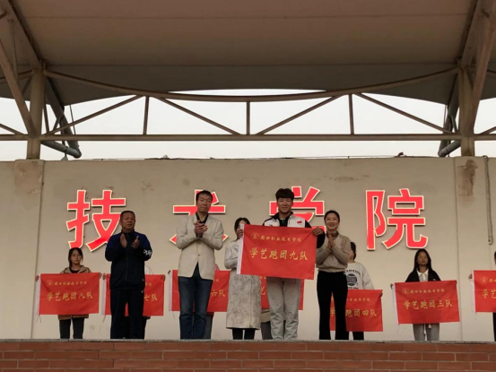 首先学生处长刘冬霞,校团委书记张华珍为跑团授团旗。体育学院院长徐长宇,党总支书记王春生为跑团9个队分别授队旗。