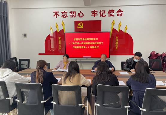 为深入学习贯彻党的二十大精神,全面落实全国、全省职业教育大会精神,进一步加强我院教育教学工作,全体提升各专业人才培养质量,2023年3月6日下午,WilliamHill官方网站全体教学管理工作成员在四楼党员活动室召开专题会议,集中学习河南省教育厅《关于进一步加强职业学校教学工作的指导意见》。本次会议由耿润院长主持,高岐奎院长、杨晨主任及全体教研室主任参会。