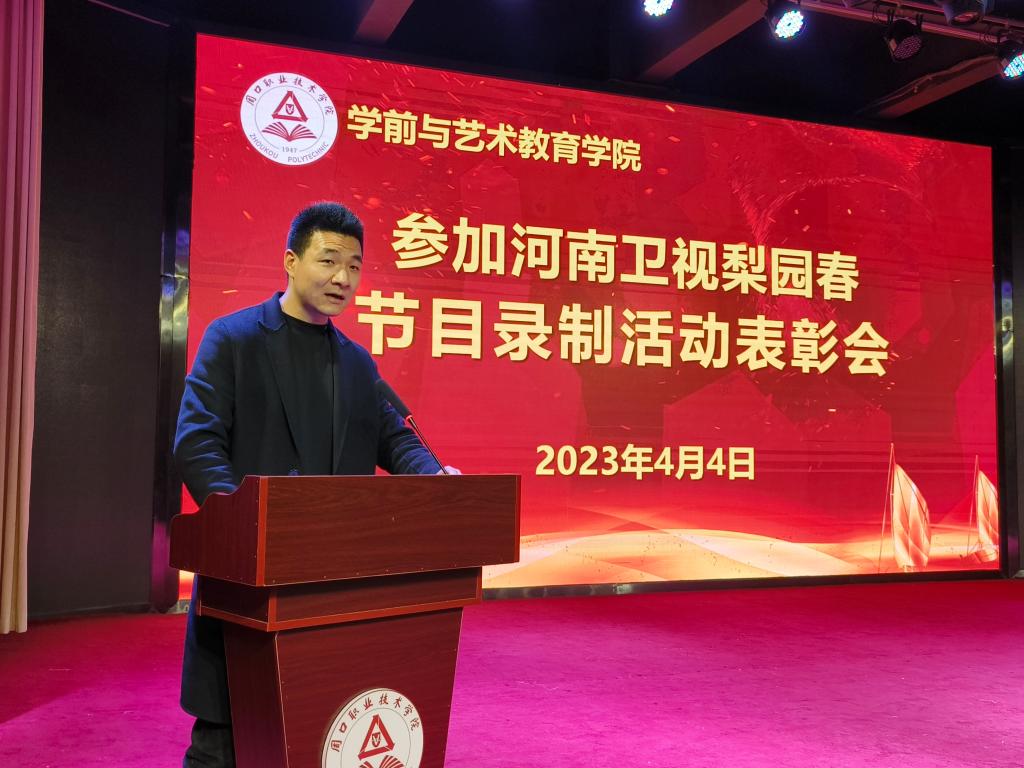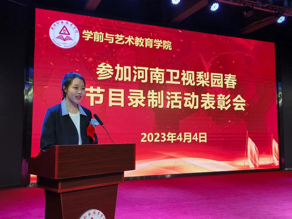 获奖学生代表朱琳琳分享了在参加河南卫视梨园春节目录制过程中的成长感悟,她鼓励大家坚守初心,不断努力,不负青春、不负韶华,在青春的赛道上奋力奔跑,用青春和汗水书写大学生活的绚丽篇章。