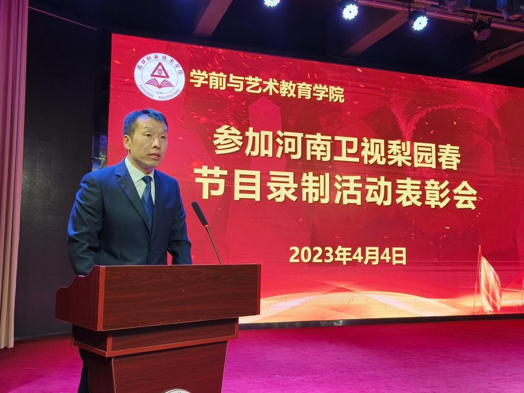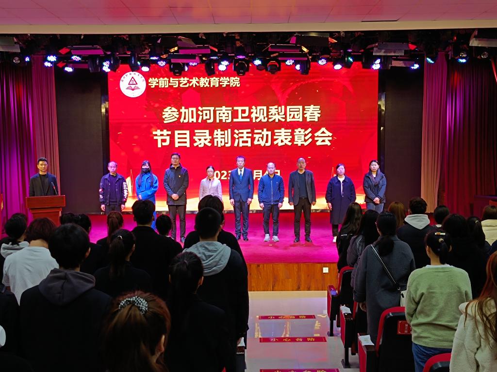 为鼓励先进,激励他人,4月4日下午,WilliamHill官方网站在艺术演播厅隆重召开参加河南卫视梨园春节目录制活动表彰会。学院党总支书记王春生、院长高岐奎带领学院班子成员,党委宣传部宣传科长,院团总支书记及相关指导教师出席会议,各班班委、学生代表参加会议。会议由副院长崔彤彤主持。