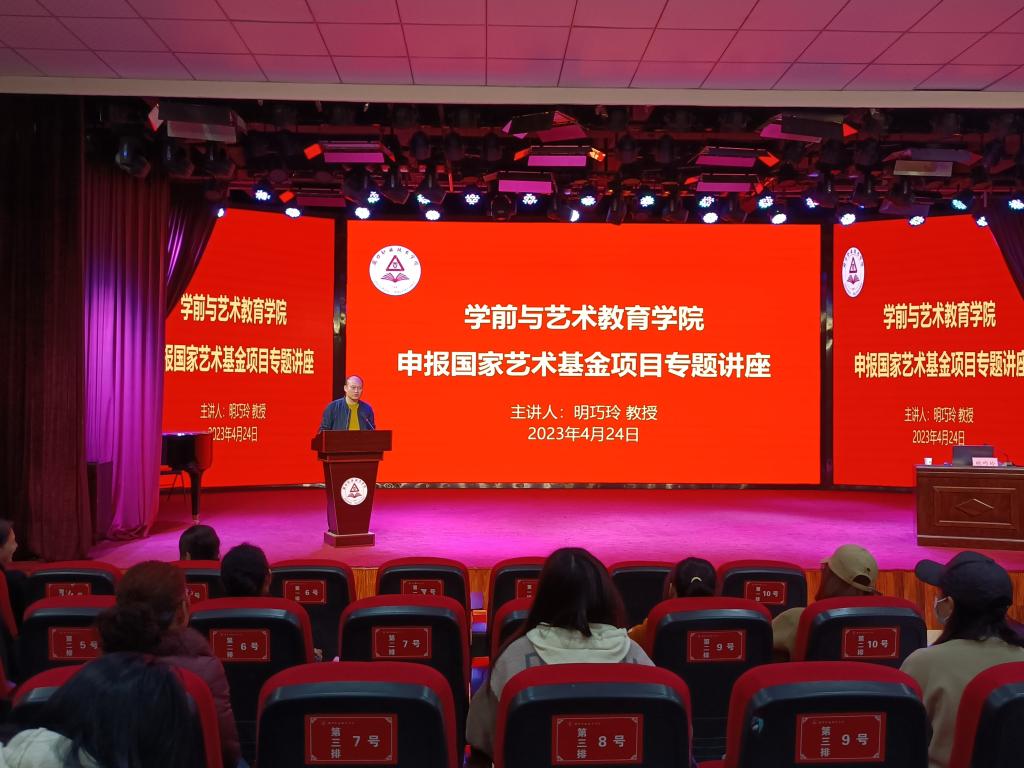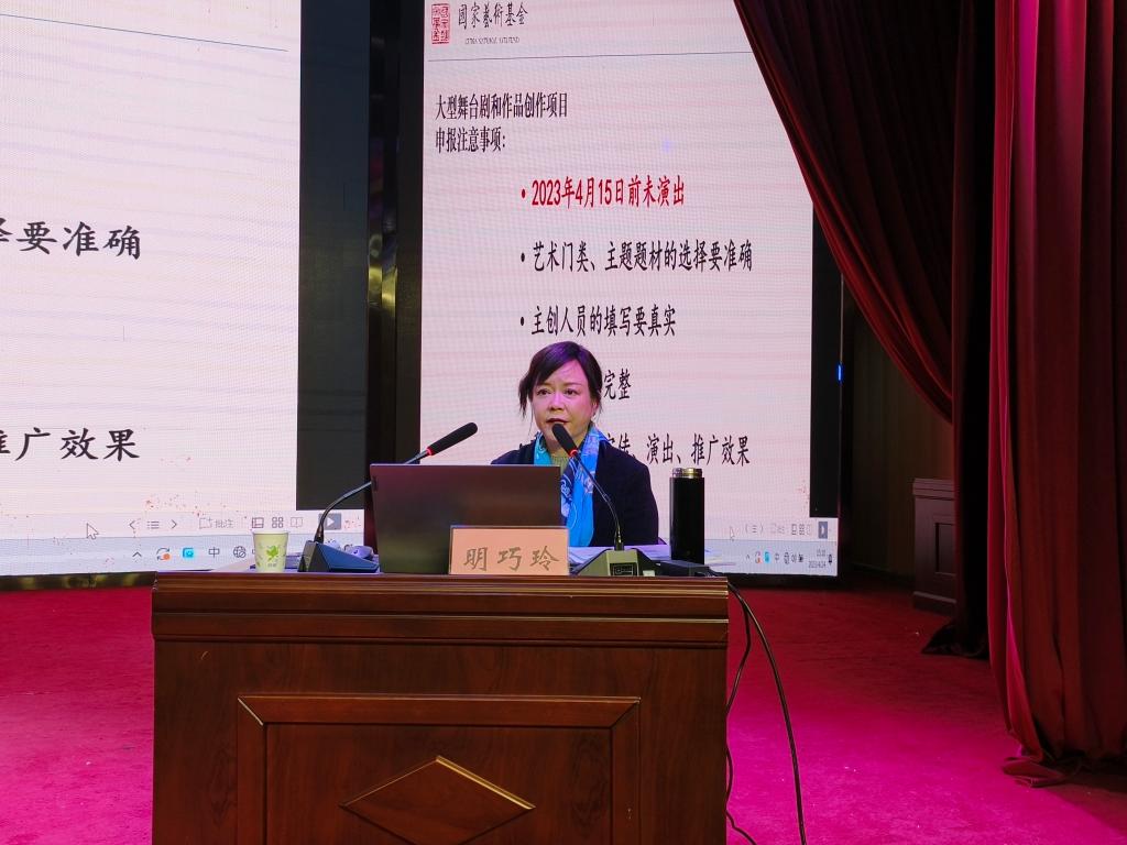 为有效推进WilliamHill官网国家艺术基金申报工作,2023年4月24日下午,学校邀请河南省文化艺术研究院研究馆员、国家艺术基金河南办公室明巧玲主任,在学前与艺术学院演播厅举办国家艺术基金2024年度资助项目申报工作辅导讲座,副校长王隼、科研外事处处长李民、WilliamHill官方网站党总支书记王春生出席讲座,相关院部教师参加聆听,讲座由WilliamHill官方网站院长高岐奎主持。