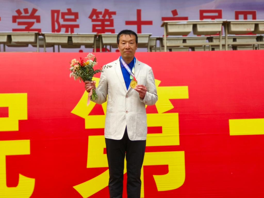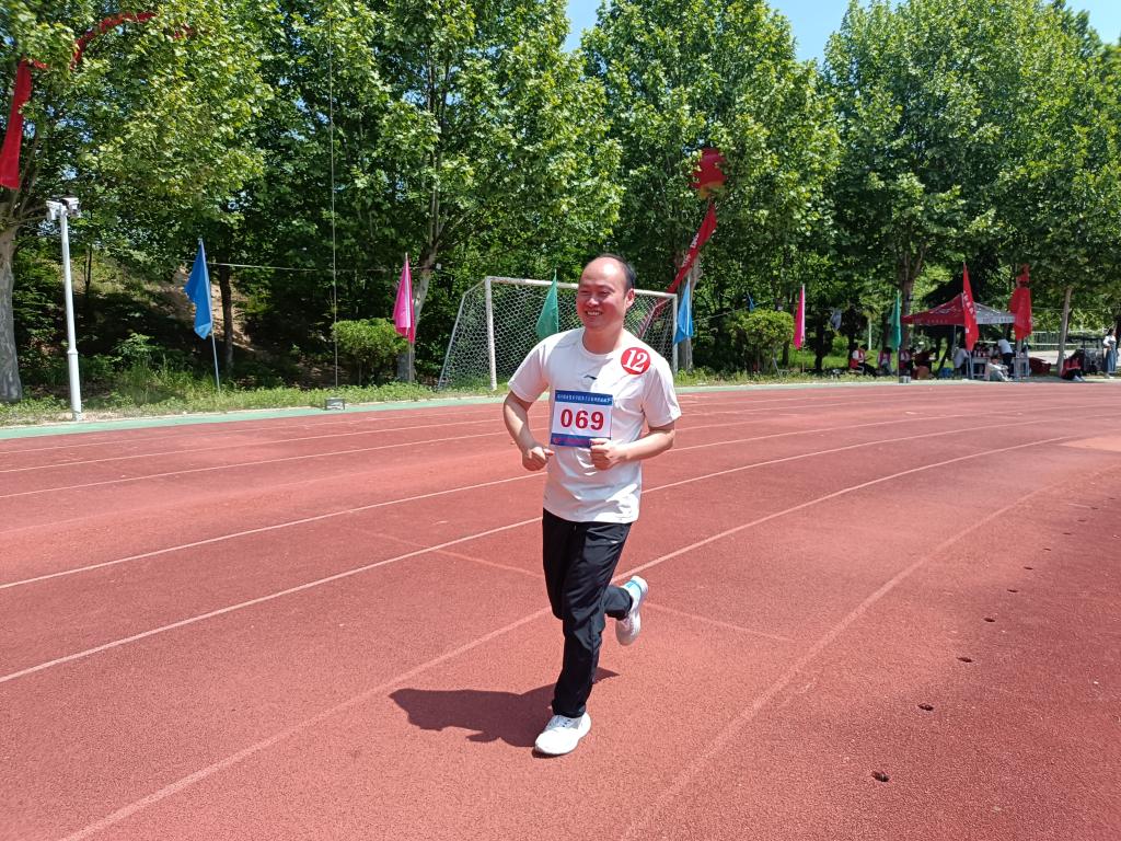 起跑线上,经过简单的热身活动,老师们一字排开,坚定的目光充满了自信。不远的终点,留下了他们冲刺时矫健的身影。我院党总支书记王春生常年跑步锻炼,在赛场上的他健步如飞,斩获了男教职工组800米项目第一名的奖牌。