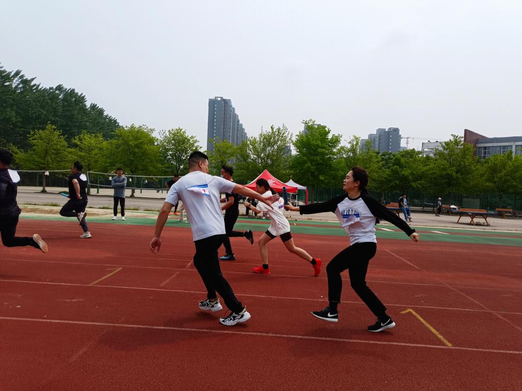比赛环节,设有男教职工组800米、女教职工组800米、教职工组4×100米接力赛等多个项目,老师们走出日常繁忙的工作,在赛场上尽情挥洒汗水。他们顽强拼搏的运动精神,凝心聚力的团队精神成为运动场上一道亮丽的风景线。