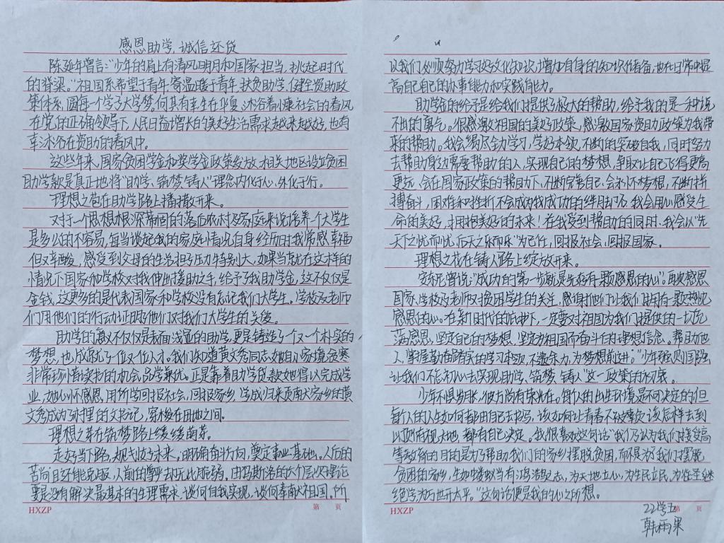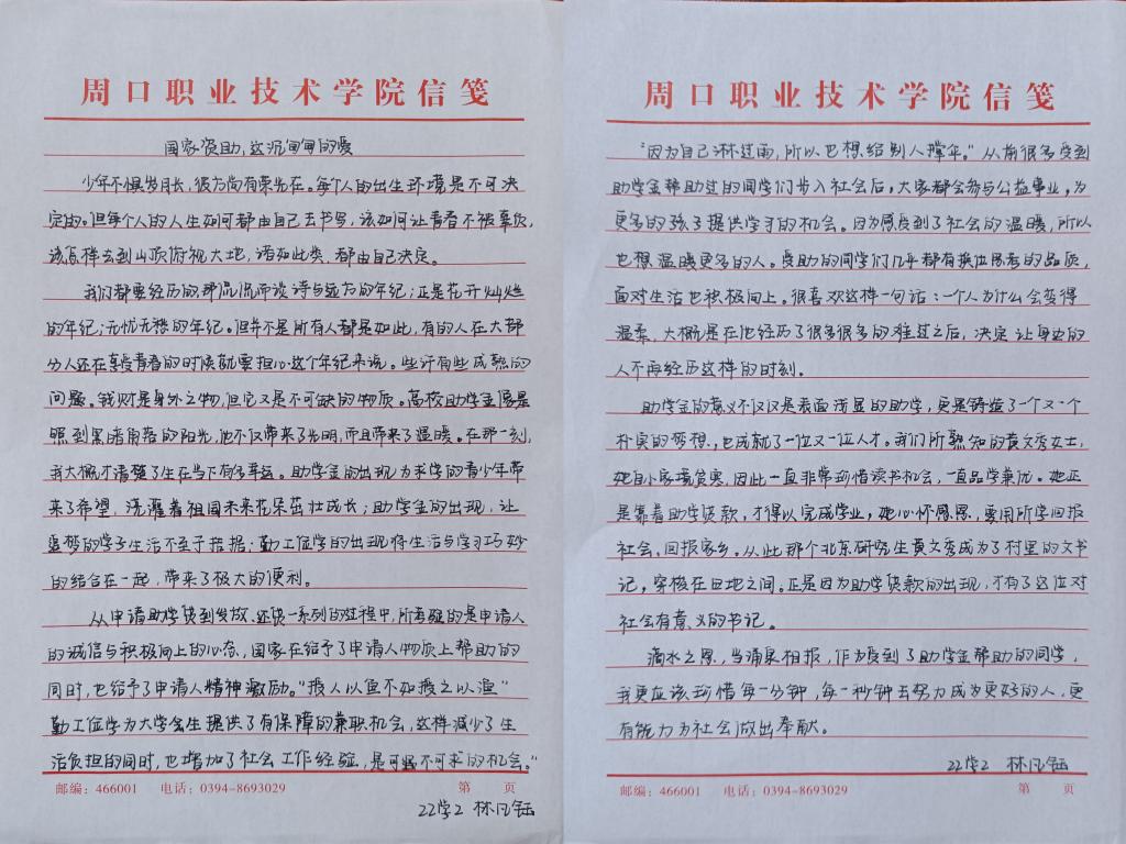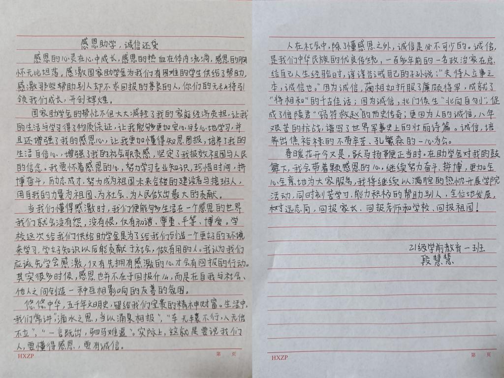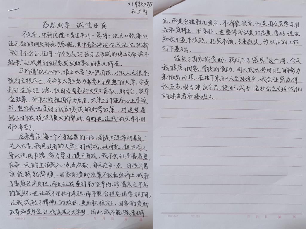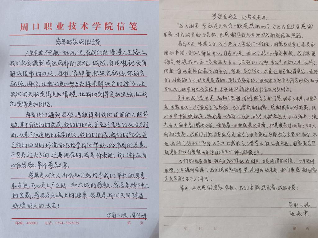 同学们挥笔泼墨、积极投稿,表达着对国家资助政策的感激和对学校及家人的感恩之情。文中语言朴实,情感流露,让人内心久久不能平静。