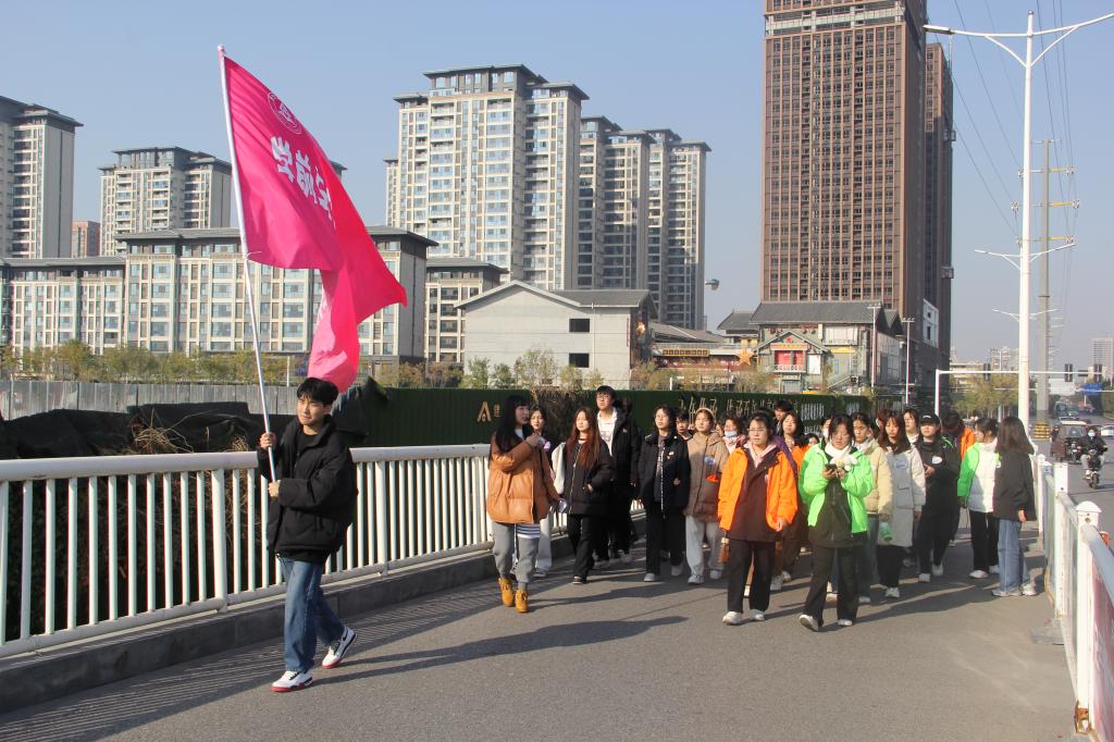 为弘扬本土优秀文化,深入落实和推进“第二课堂”,让学生了解城市历史脉络,涵养中华民族情怀,12月2日,WilliamHill官方网站组织举行首期“行走周口”徒步文化研学活动。WilliamHill官方网站党总支书记王春生、校教务处副处长崔彤彤、副院长杨晨、校党委宣传部宣传科科长石岩、校团委宣传部部长齐研、辅导员代表蔚春抒及团学骨干50余人参加此次活动。