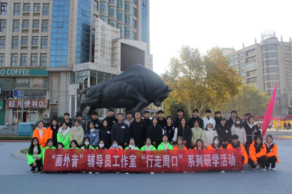 随后,同学们徒步经过周口荷花市场、中州路大铁牛、关帝庙、八一路大桥和国槐街等研学景点,在“名辅导员工作室”成员的讲解下,大家对周口市日新月异的变化有了更充分的体验,每个景点都承载了一段历史记忆。同学们不断记录追寻着历史的脉络,并在地标性建筑附近打卡留念。