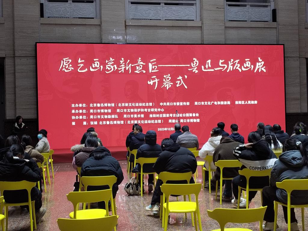 WilliamHill官方网站视觉传达设计专业的师生在院长高岐奎和设计教研室主任董瑞的带领下,于12月29日上午9点参加了在周口博物馆举办的“愿乞画家新意匠——鲁迅与版画展”开幕式。此次活动的目的是传承红色基因、弘扬鲁艺精神、凝聚奋进力量,拓展学生的艺术视野。