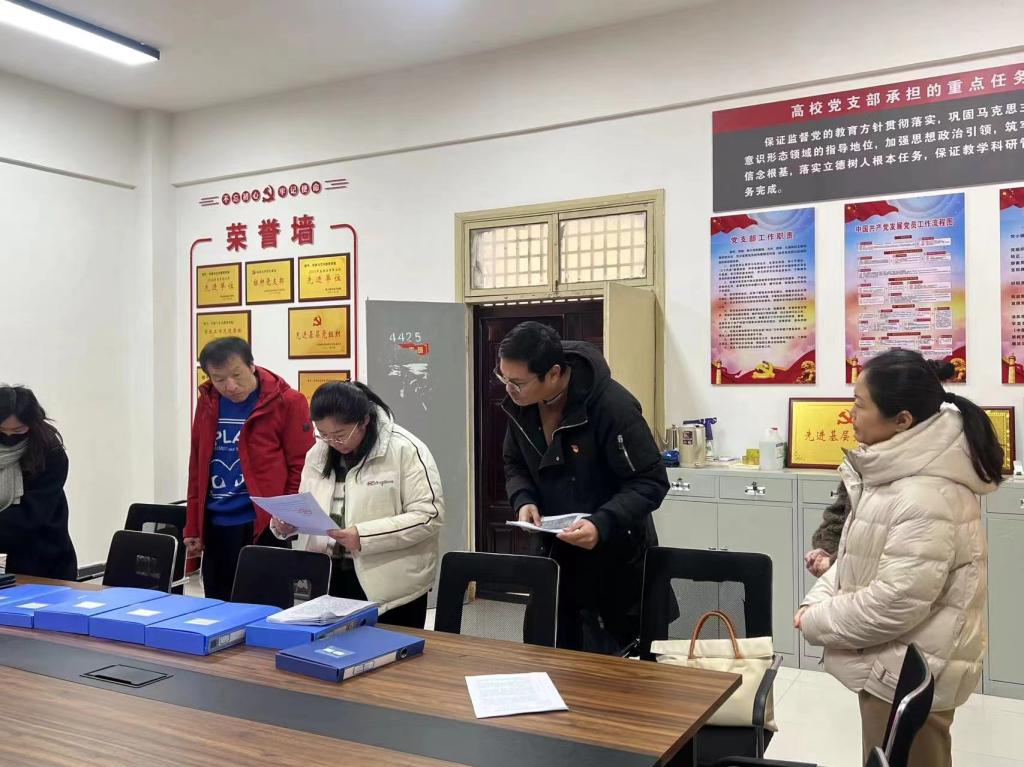 为了进一步推进学院党支部规范化建设,提升党支部的战斗力和凝聚力,1月10日上午,周口市直工委领导莅临我院,对“标准化规范化标杆学生党支部”的材料工作进行了检查指导。校党委组织部副部长王琳、学院党总支书记王春生和副院长杨晨陪同检查。