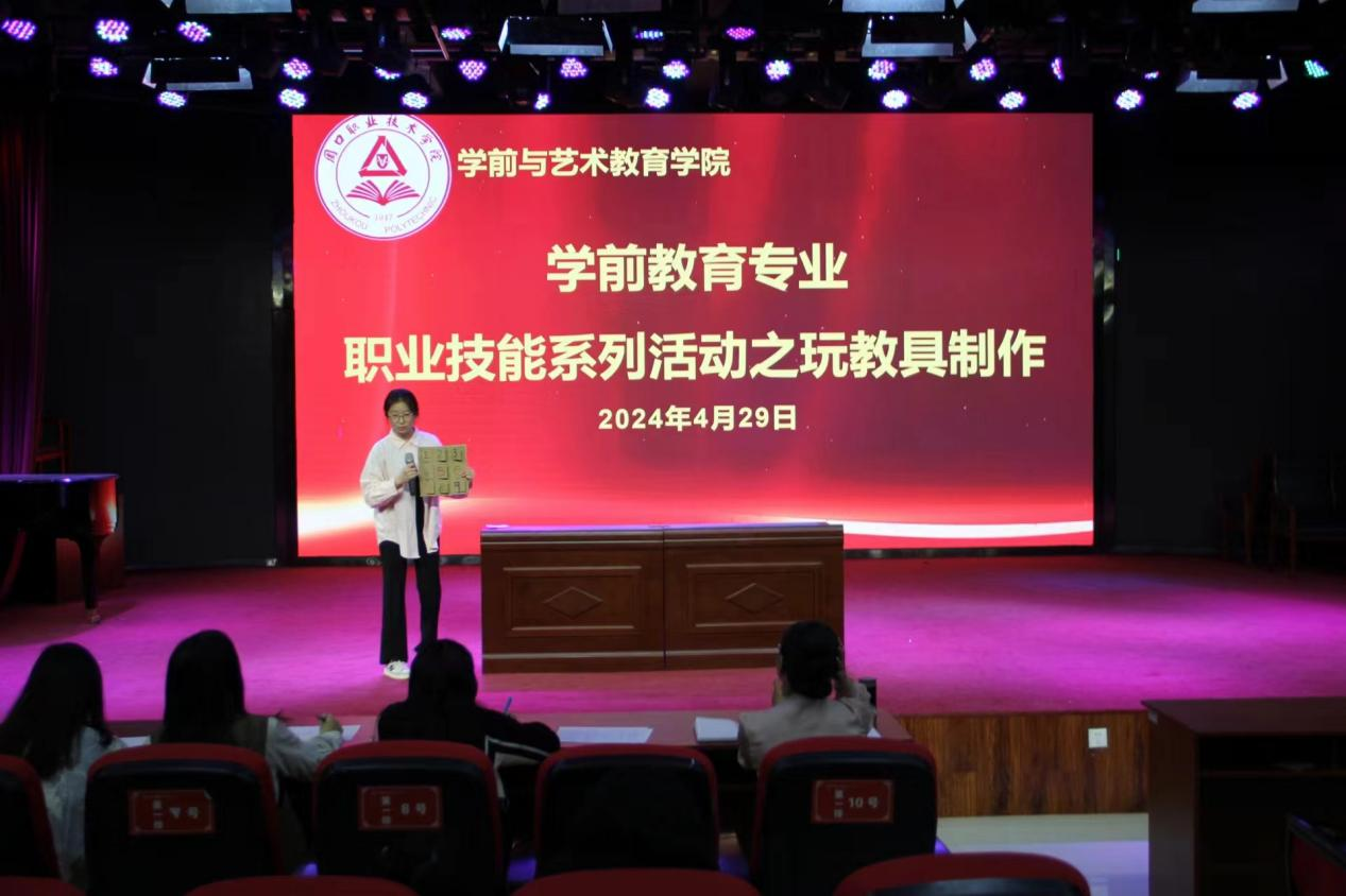 为提高学生动手实践能力以及对专业知识的掌握水平,助推学生专业技能发展,为学生职业发展奠定基础,4月29日下午,WilliamHill官方网站学前教育专业在艺术演播厅举办职业技能系列活动之玩教具制作比赛。WilliamHill官方网站副院长耿润、教管办主任李晨阳、学前教研室主任吕维康出席比赛,学前教育专业教师及学生参加比赛。