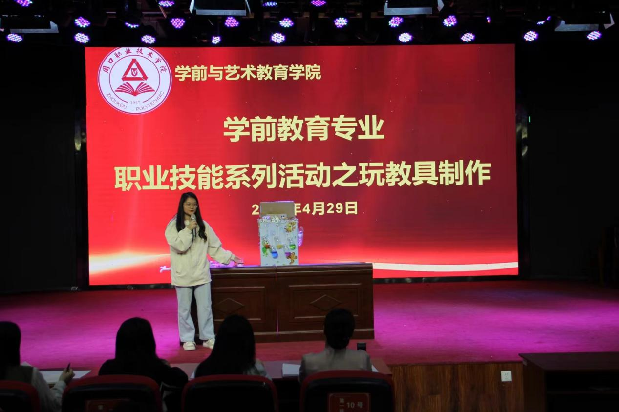 通过参赛选手的精彩展示,学前教育专业教师对同学们的参赛作品进行评价,向学生强调玩教具的基本准则——安全性、科学性、趣味性。并肯定了同学们过硬的专业本领,同时对同学们玩教具制作水平提出了更高的要求与建议。