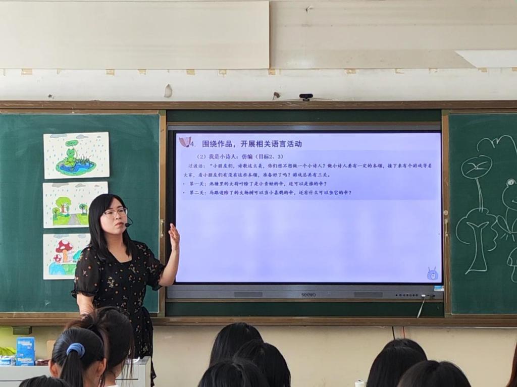 课堂上,沙老师首先结合学生课前线上学习情况,带领学生一起回顾了幼儿园教育活动设计的流程,然后组织学生进行幼儿园教育活动的模拟教学,学生模拟教学结束后,沙老师对学生的教学设计以及模拟教学的每一个环节进行了详细的点评,并亲自运用多种方法展示了模拟教学的关键环节。
