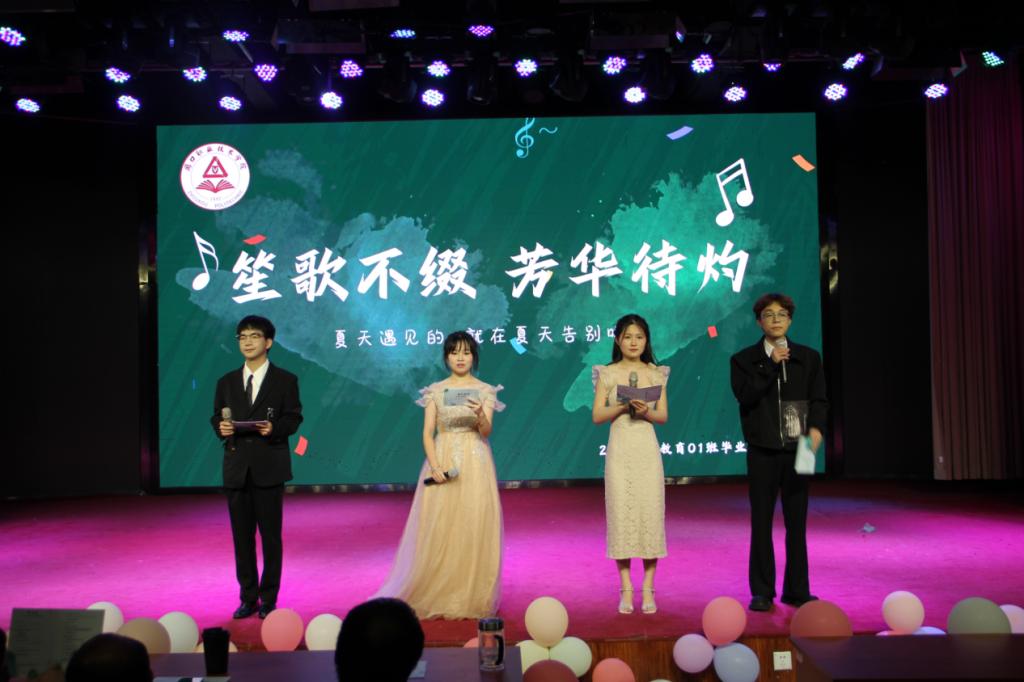 音乐会在全体成员准备的彩蛋节目中落下帷幕。22级音乐教育专业辅导员张浩宇老师为毕业生送上衷心祝福及专属定制礼物,希望同学们能够夜里有灯,眼里有光。勇敢面对人生未来的旅程,同时祝愿他们在未来的学业和漫漫人生道路上能够愈发优雅,且自信地稳步前行。