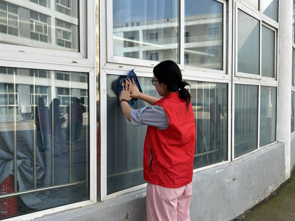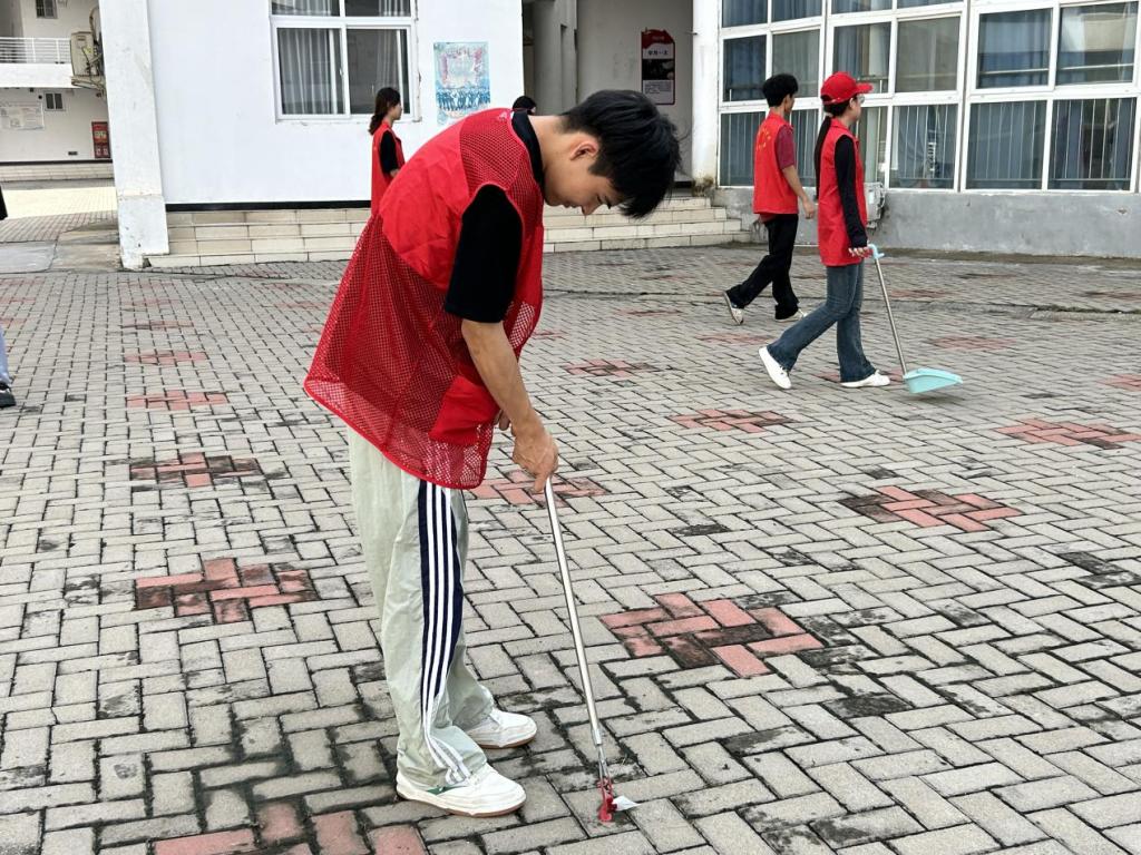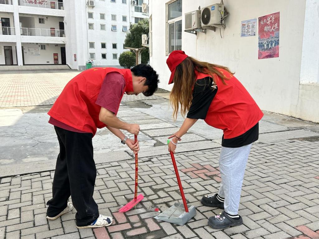 青年志愿者们头戴小红帽,身穿红马甲,精神饱满,大家带着笤帚、簸箕、抹布等工具,分组对学院各区域进行清洁。在大家齐心协力,学院环境面貌焕然一新,看到学院环境因自己的努力而大变样时,每个人的心中都洋溢着满满的成就感与喜悦。