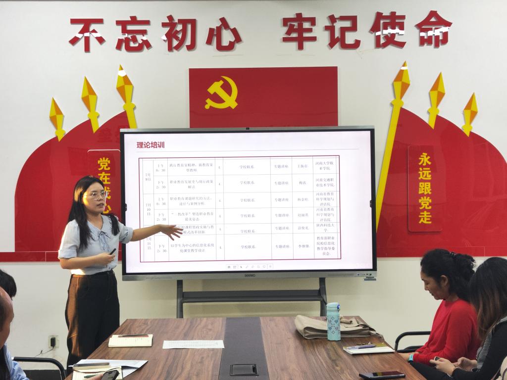 会上,参训教师围绕“专业理论学习”“行业岗位实践”“教学创新探索与提升”主题,依次分享了各自的培训成果和心得体会,并与在场教师积极互动,就培训中学习到的新理念、新模式、新方法进行深入探讨交流。