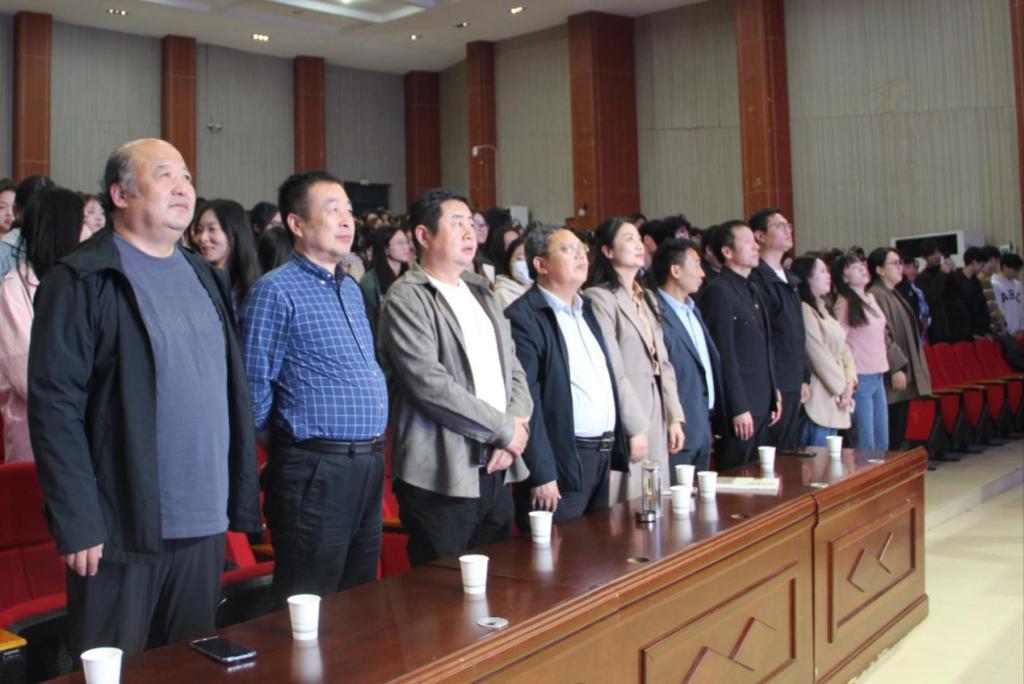 李荣华老师从国歌的历史意义和文化内涵着手,阐释了国歌对中华民族的重要意义,同时还对《义勇军进行曲》诞生背景和发展历程进行讲解,他指出了人们在演唱国歌过程中常见的错误。通过李荣华老师的耐心讲授,在庄严肃立的氛围下,大家共同唱响《义勇军进行曲》,当伟大的国歌响彻会场时,瞬间燃起了师生们的爱国情怀,让大家在歌声中铭记历史,感受祖国的伟大。