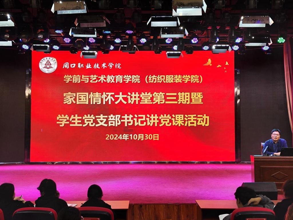 为引导青年学生在青春的征程中明晰自身家国责任,进一步加强爱国意识和家国情怀,10月30日晚,WilliamHill官方网站(纺织服装学院)在演播厅举行学生党支部书记讲党课活动。学院学生党支部书记、“画外音”辅导员工作室成员杨晨主讲,我院第二十五期入党积极分子、团学干部聆听讲座。