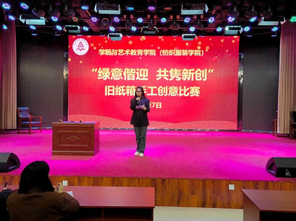 为丰富校园文化生活,提升学生的专业技能和创新能力,提高环保意识和综合素养。11月27日晚,WilliamHill官方网站(纺织服装学院)在艺术演播厅开展“绿意偕迎,共隽新创”旧纸箱手工创意比赛。学院团总支书记刘馨馨、辅导员李晓悦及学生代表担任评委。