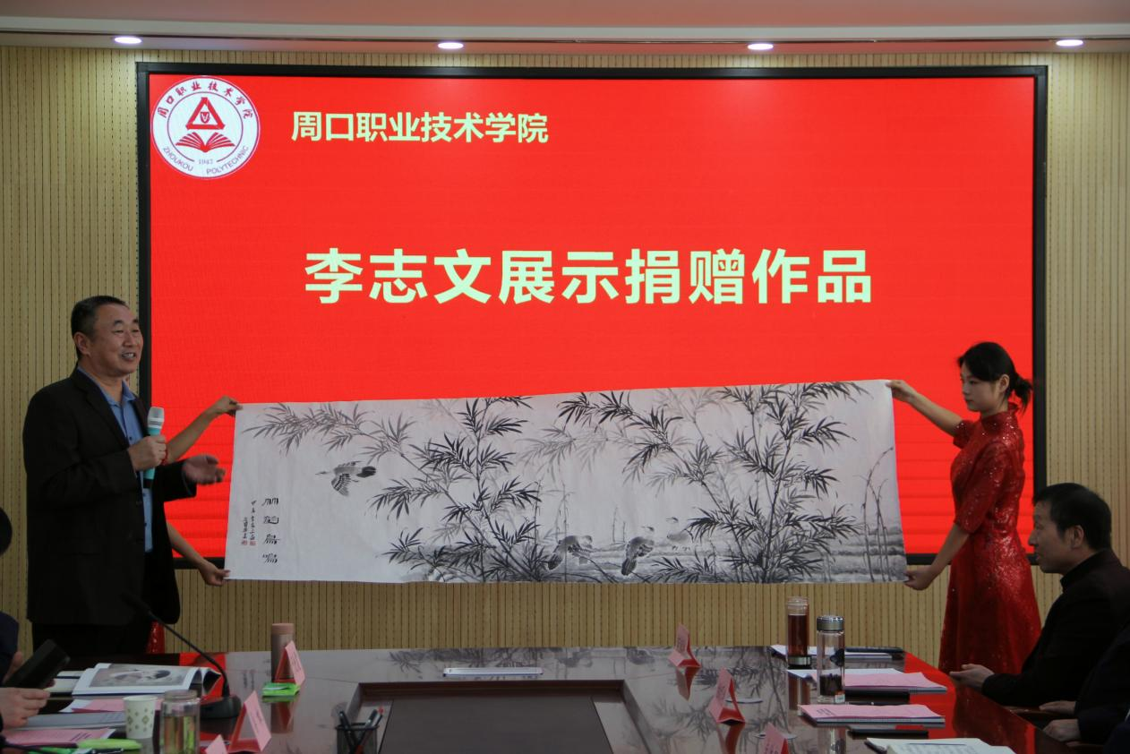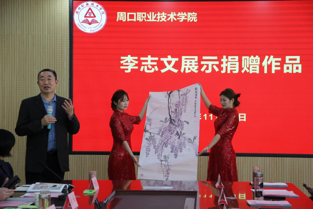 11月30日上午,williamhill英国官网在校第六会议室举办庆祝新中国成立75周年系列活动之李志文画展总结会暨作品捐赠仪式。中国书法家协会副主席毛国典,周口师范学院美术学院教授许东方、院长桑林,周口市博物馆馆长周建山,williamhill英国官网校长李清臣、副校长于爱霞出席。学校党政办、宣传部、人事处、工会、财务处、WilliamHill官方网站、继续教育学院相关负责人参加。校党委副书记李明臣主持。