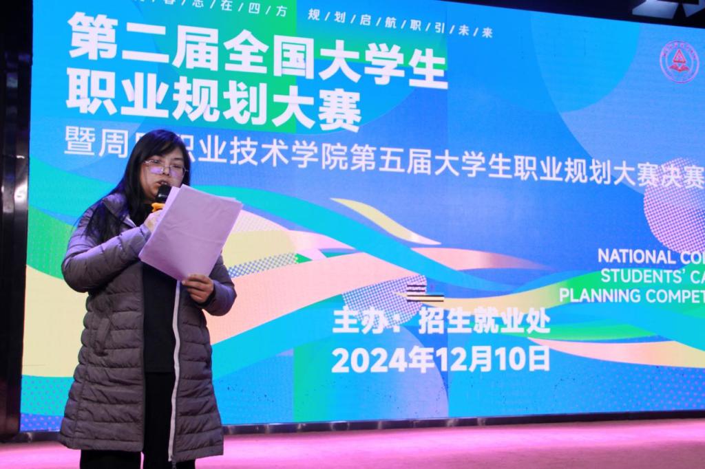 决赛分为路演和答辩两个环节,选手们采用PPT演讲与对答的形式,从职业目标、发展路径、面临挑战与应对策略等维度,清晰地呈现了对未来意向职业的规划。我院选手刘晓阳、李依婷表现出色,她们基于自身经历,将职业规划同实际案例精妙融合,充分展现出深厚的专业素养与卓越的应变能力。