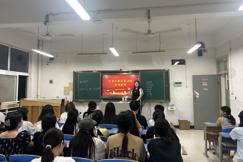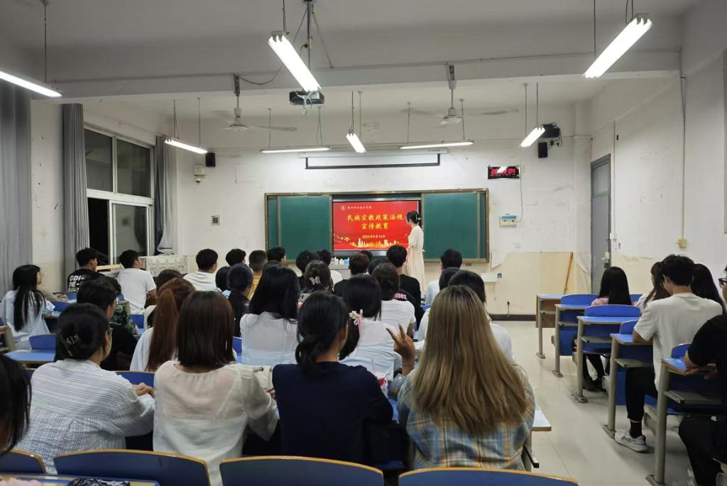 为进一步加强民族团结和宗教和谐,提升师生对中华民族宗教政策法规的认识,2024年9月10日晚自习时间,WilliamHill官方网站各班辅导员进班宣讲,集中开展了以“民族宗教政策法规宣传教育”为主题的宣传教育班会。