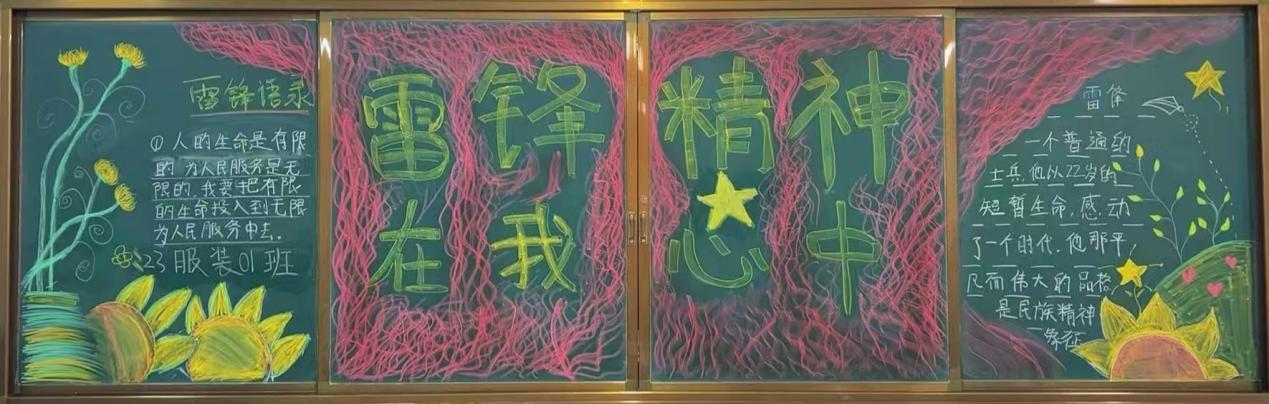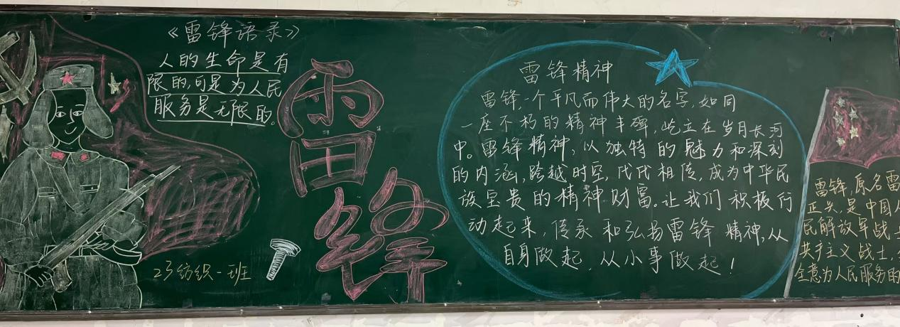 各班级积极参与,收集资料,围绕雷锋精神精心绘制了一幅幅生动形象的黑板报,不仅美化了学院氛围,更在无形中激发了同学们对雷锋精神的向往和追求。现在,让我们一起走进黑板报的世界里去探索其中的精神宝藏吧!