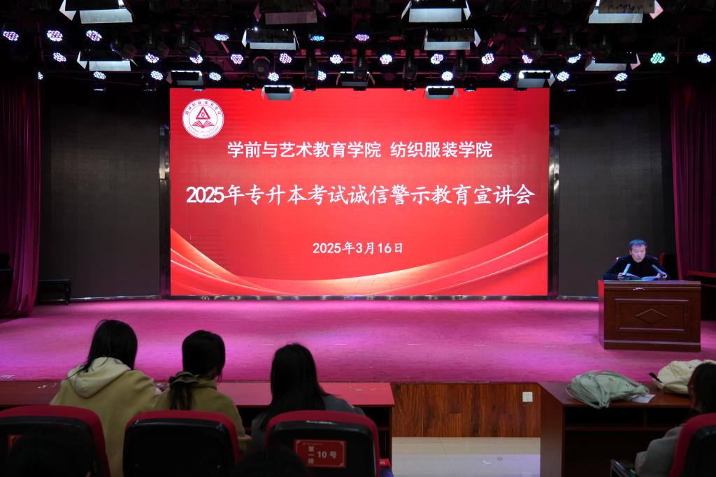 为端正考风,严肃考纪,3月16日上午,WilliamHill官方网站(纺织服装学院)在艺术演播厅召开2025年专升本考试诚信警示教育宣讲会。学院领导班子、22级辅导员以及学院22级全体专升本学生参加会议。