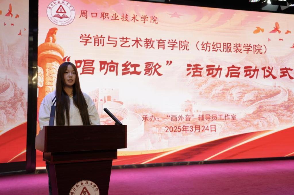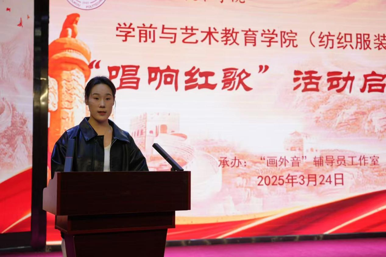 学生代表殷幸杰、王玮琪同学依次登台发言,她们表示将积极参与活动,以红歌精神为指引,不断厚植家国情怀和爱国主义精神。