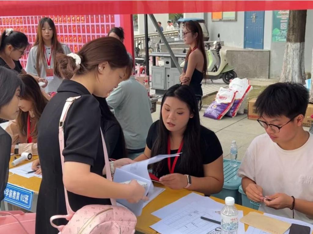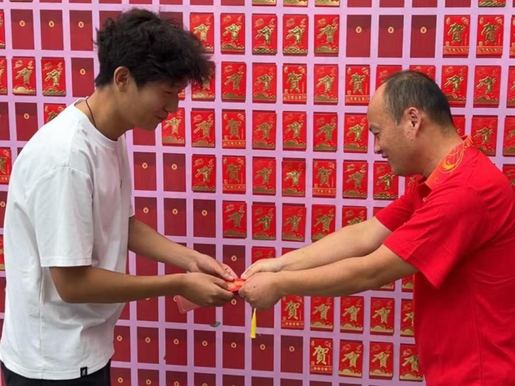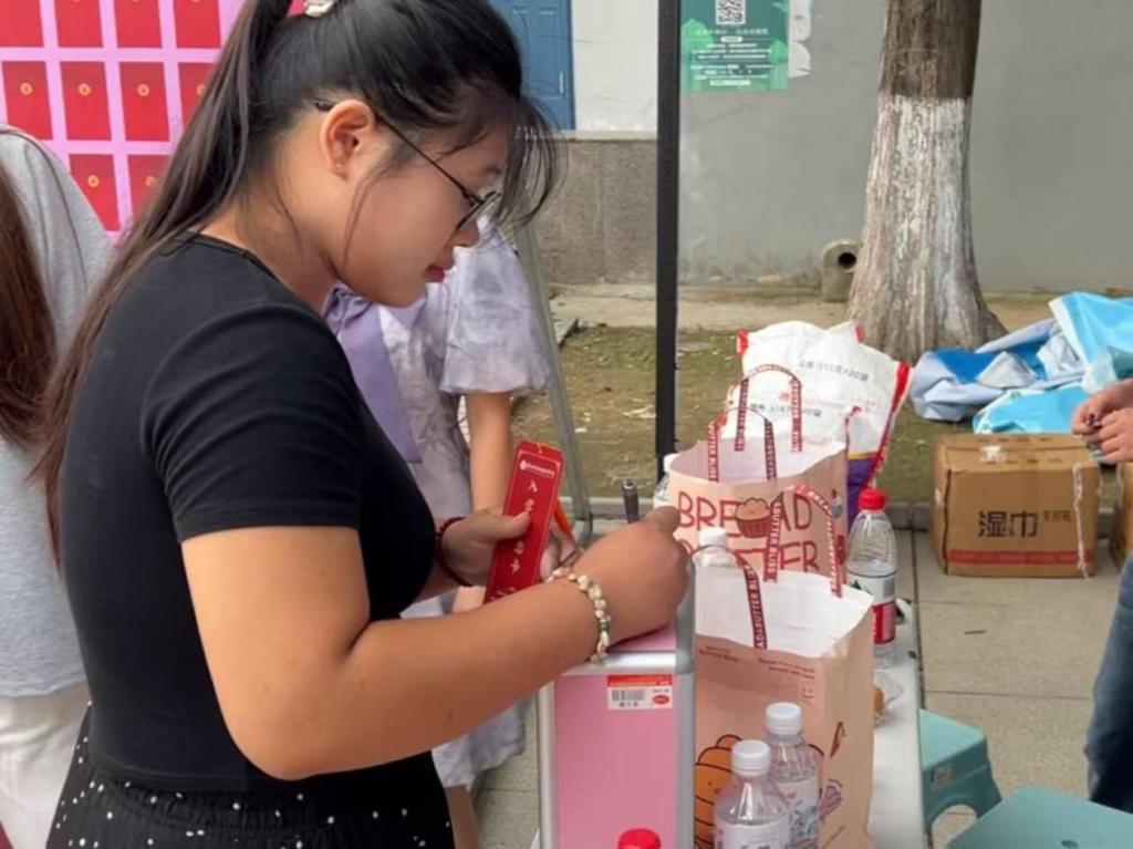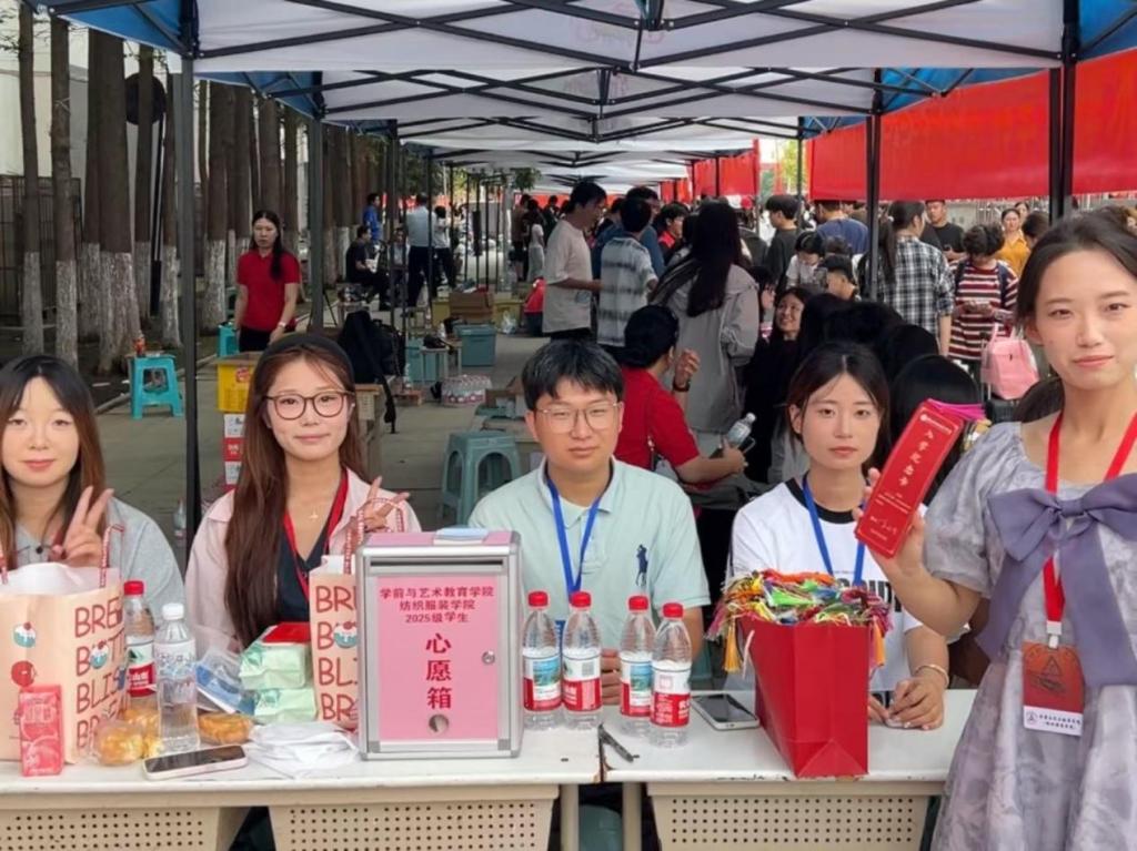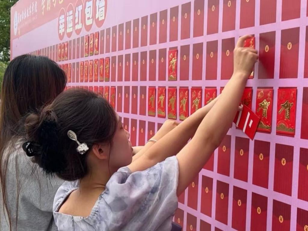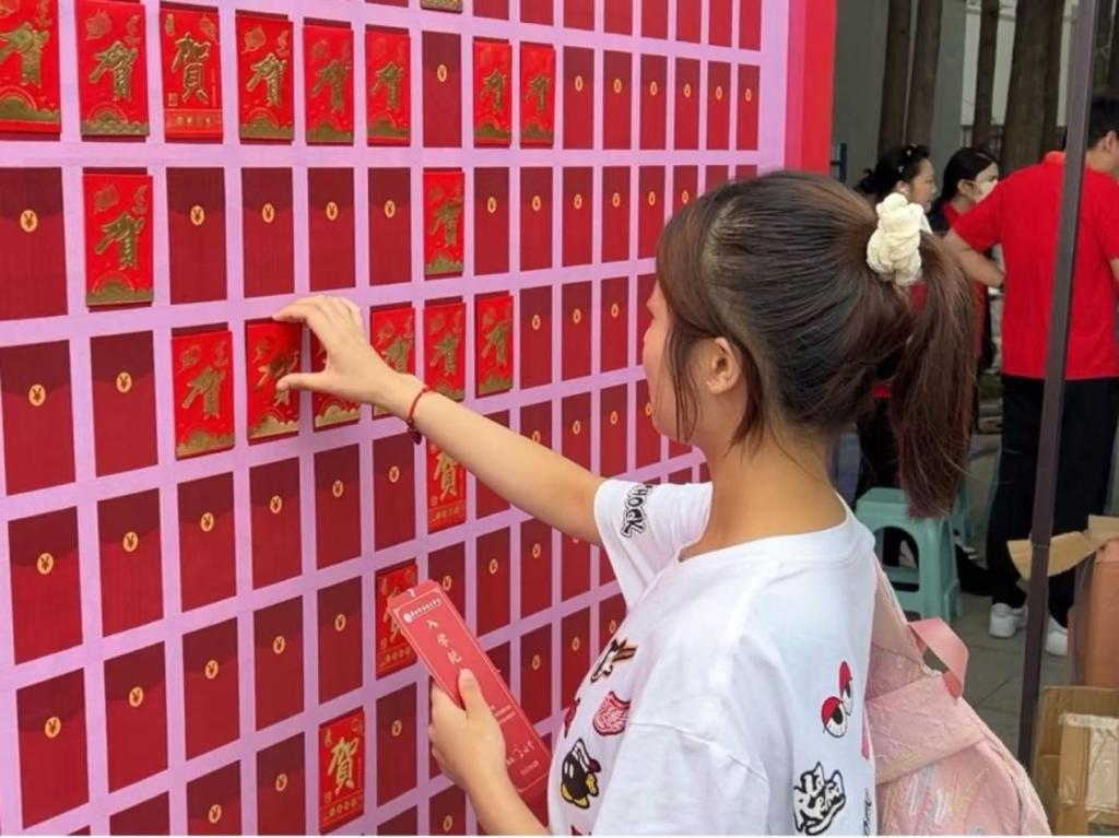 工作人员引导新生至红包墙抽取红包,收获专属入学礼物。这份别具心意的礼物承载着学院的温暖与祝福,让新生在学艺大家庭中感受到喜悦与归属感,为他们的大学生活留下了温馨美好的初印象。